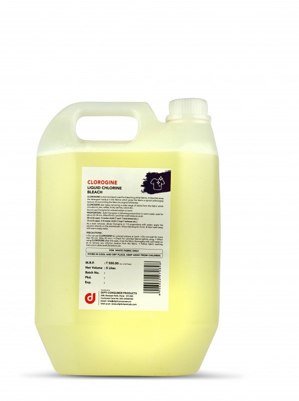 Clorogine is chlorine bleach used for bleaching white fabrics. It bleaches away the detergent residue in the fabrics which gives the fabric a typical yellow/gray texture, thus providing the fabric its original whiteness. Clorogine also helps removing a wide range of stains from the fabric which includes tea, offee, fruits, berries, colors etc. NOT FOR USE ON COLOURED FABRICS