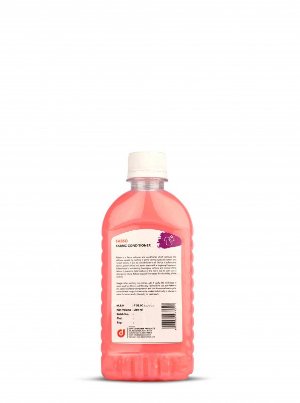 Fabso is a fabric softener and conditioner which removes the stiffness caused by washing in some fabrics especially cotton and Turkish towels. It acts as a conditioner to all fabrics. It softens the fabrics, gives it shine and leaves them with a lingering Fragrance. Fabso helps in maintaining the original softness and texture of the fabrics. It prevents deterioration of the fabric due to over use of detergents. Using Fabso regularly increases the durability of the clothes.