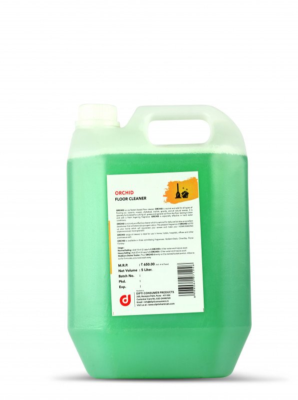 Orchid is a surfactant based floor cleaner. Orchid is neutral and safe for all types of flooring viz. ceramic, mosaic, shahabad, marble, granite, and all natural stones. It is specially formulated for cutting oil, grease and general soil from the floor, leaving it clean and with a fresh lingering fragrance. Orchid is especially effective in hard water conditions. Orchid is not only an effective cleaner which is optimal for daily use but also an excellent deodorizer that will eleminate pungent odour. The pleasant fragrance of Orchid will fill up your home which will rejuvenate your senses and make your HOME-MAKING experience even more splendid. Orchid range of cleaner is ideal for use in home, hotels, hospitals, offices and other premises as well. Orchid is available in 5 scintillating fragrances: Verdant-Oasis, Citra-Dip, Floral Fantasy, Sandal Delight & Lemongrass