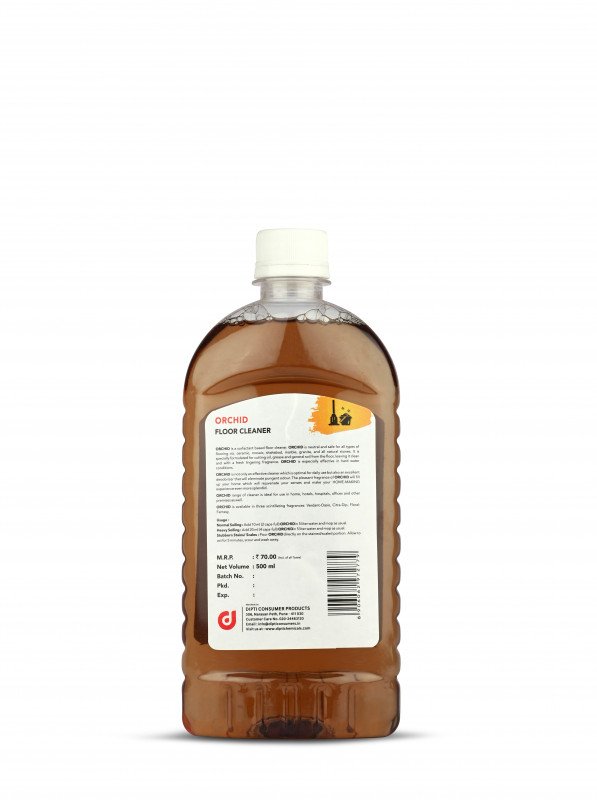 Orchid is a surfactant based floor cleaner. Orchid is neutral and safe for all types of flooring viz. ceramic, mosaic, shahabad, marble, granite, and all natural stones. It is specially formulated for cutting oil, grease and general soil from the floor, leaving it clean and with a fresh lingering fragrance. Orchid is especially effective in hard water conditions. Orchid is not only an effective cleaner which is optimal for daily use but also an excellent deodorizer that will eleminate pungent odour. The pleasant fragrance of Orchid will fill up your home which will rejuvenate your senses and make your HOME-MAKING experience even more splendid. Orchid range of cleaner is ideal for use in home, hotels, hospitals, offices and other premises as well. Orchid is available in 5 scintillating fragrances: Verdant-Oasis, Citra-Dip, Floral Fantasy, Sandal Delight & Lemongrass
