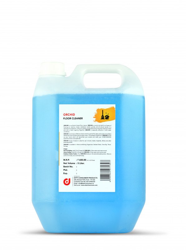 Orchid is a surfactant based floor cleaner. Orchid is neutral and safe for all types of flooring viz. ceramic, mosaic, shahabad, marble, granite, and all natural stones. It is specially formulated for cutting oil, grease and general soil from the floor, leaving it clean and with a fresh lingering fragrance. Orchid is especially effective in hard water conditions. Orchid is not only an effective cleaner which is optimal for daily use but also an excellent deodorizer that will eleminate pungent odour. The pleasant fragrance of Orchid will fill up your home which will rejuvenate your senses and make your HOME-MAKING experience even more splendid. Orchid range of cleaner is ideal for use in home, hotels, hospitals, offices and other premises as well. Orchid is available in 5 scintillating fragrances: Verdant-Oasis, Citra-Dip, Floral Fantasy, Sandal Delight & Lemongrass