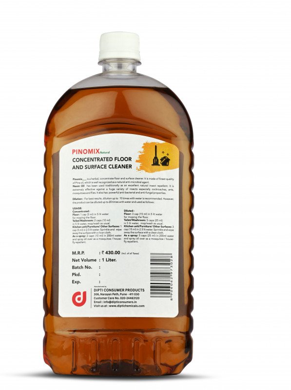 Pinomix is a Herbal, Concentrate floor & Surface Cleaner. It is made of finest quality pine of Pine and Camphor oil which is well recognized as a natural anti-microbial agent. Pinomix comes loaded with neem oil and terpineol, both of with are natural anti-microbial agents.